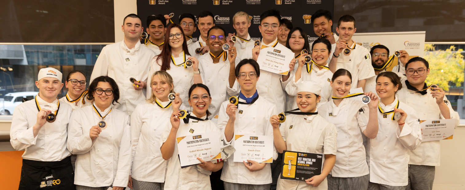 Celebrating its 60th anniversary, the prestigious Nestlé Golden Chef’s Hat Award brought together 24 of Victoria’s brightest young chefs for a thrilling cook-off at our Melbourne campus.