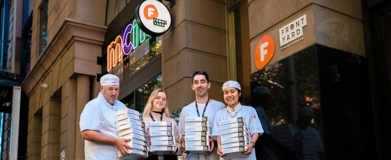 Certificate III in Baking students Panisara Tippawan and Jason Barrett volunteered to deliver hundreds of hot cross buns to CBD based charity Frontyard Youth Services, which aids at-risk youth.