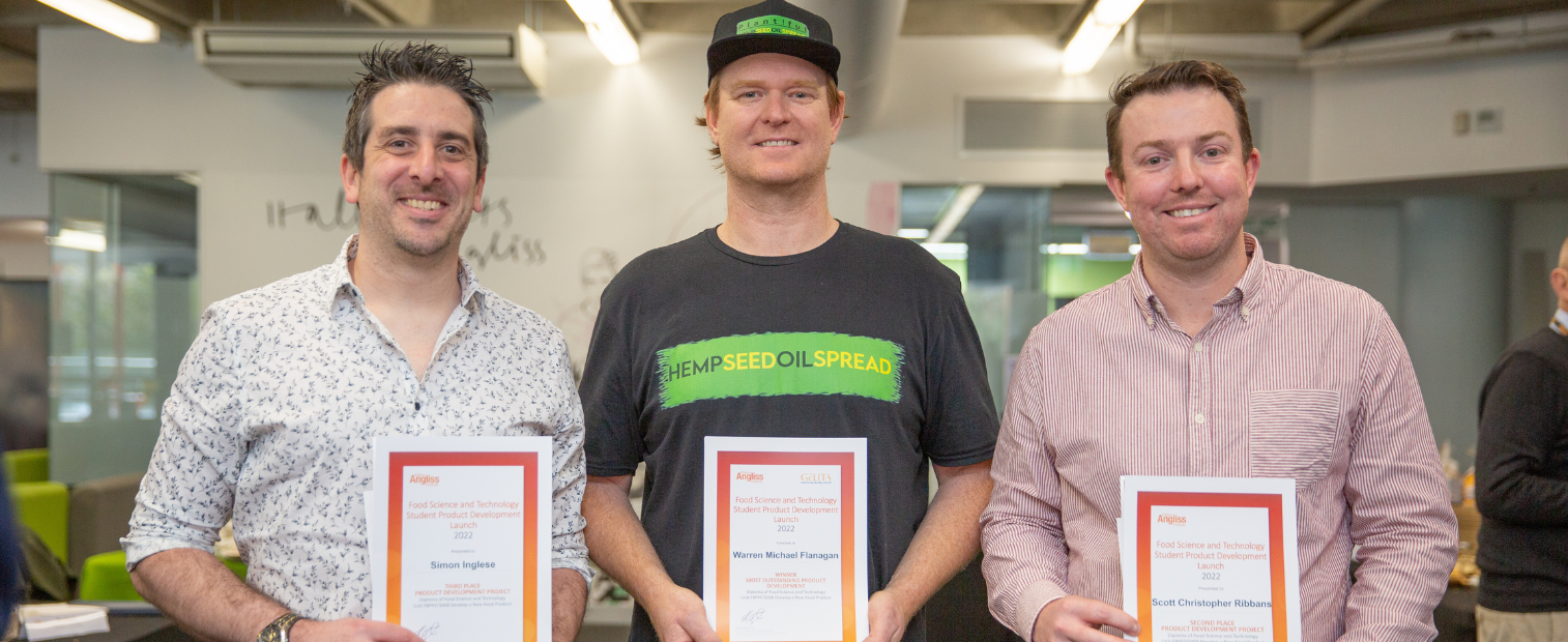 This year, Food Science & Technology student Warren Flanagan won first place with his edible hemp seed oil spread. In second place was Scott Ribbans for his meal-replacement muffin, great for those on the go, and in third place, was Simon Inglese for is well-balanced smoked aioli.