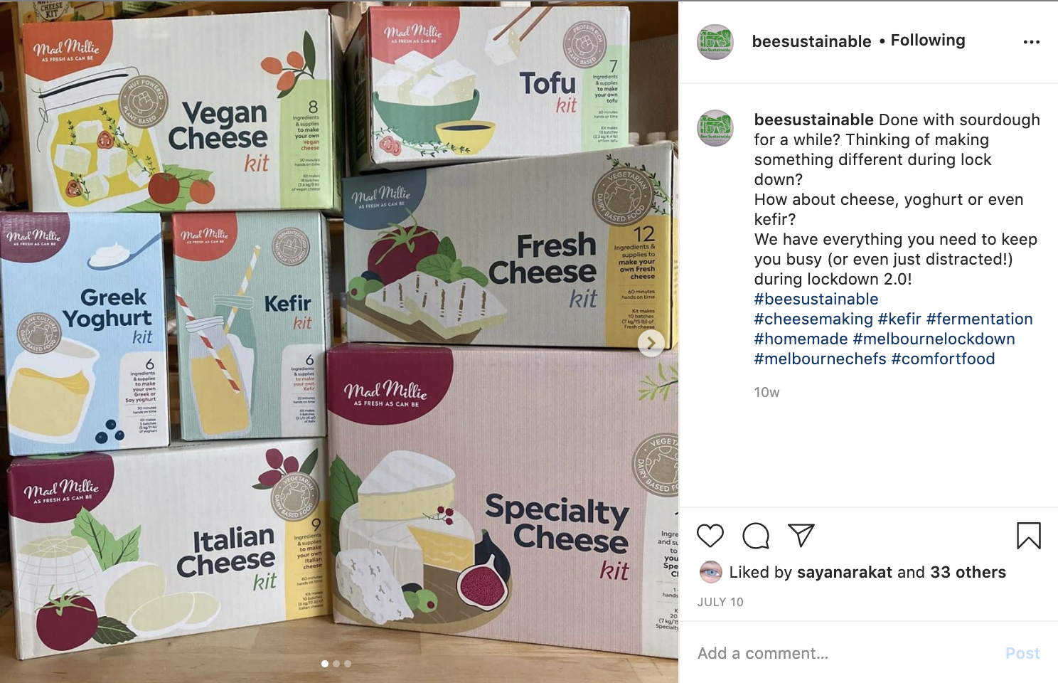 Bee Sustainable is a snug retailer offering eco-minded cooking supplies, beekeeping equipment, grain mills & more. If you're passionate about bees, from how to take care of them to simply enjoying a good jar of ethical honey - this the place for you! They also run workshops on fermentation, baking and more. Keep an eye out for these events when our restrictions are lifted in Melbourne.