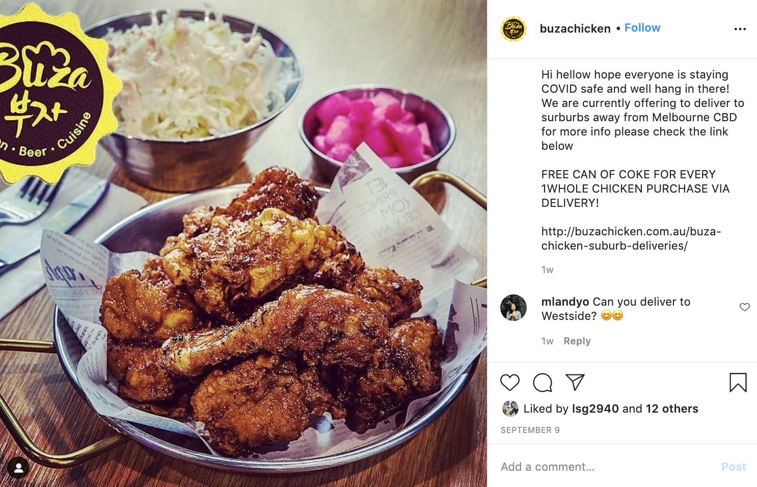 Recommended by one of our third-year students Henry, Buza Chicken is perfect for big groups of people who are looking for cheap meals and something to celebrate. They're known for their Korean style fried chicken, but they also serve bulgogi, japchae and more. The good news is they also deliver. So you don't have to wait for restrictions to be fully lifted to enjoy Buza Chicken.