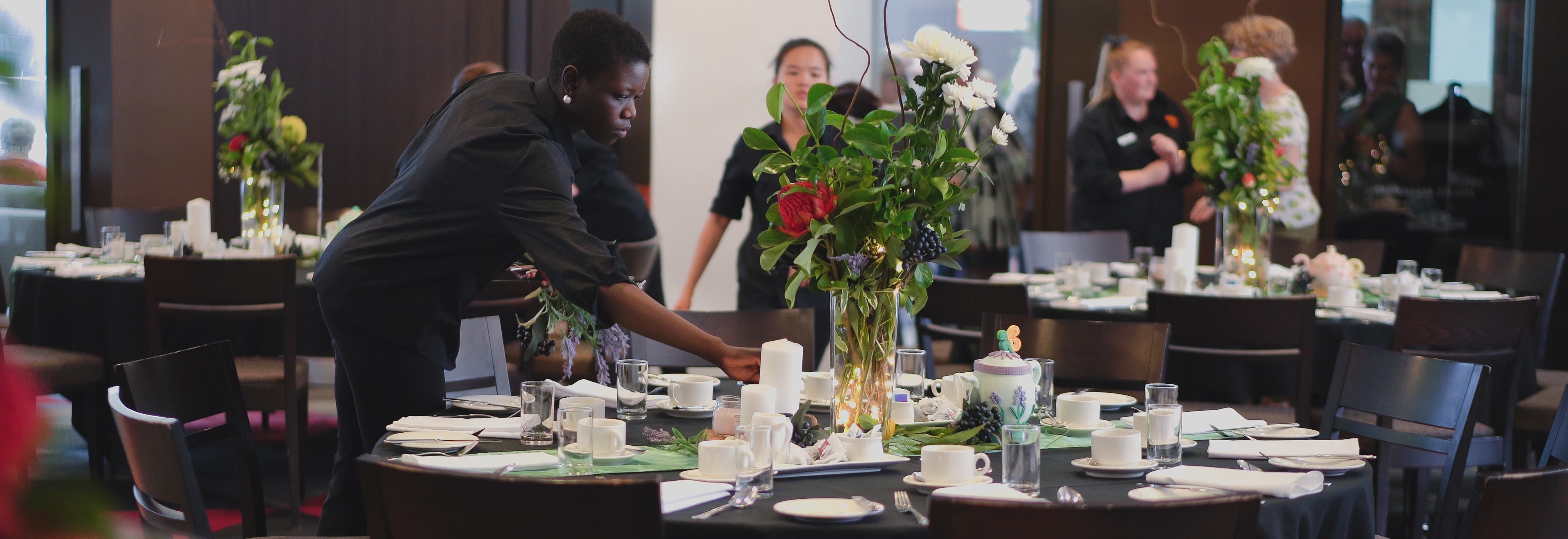 The learning experience extends beyond the kitchen with hospitality students also gaining experience running the front of house service including wine matching, mixing cocktails and fine dining customer service. Diploma for Event Management students are also often involved with the front-of-house experience including event styling.
