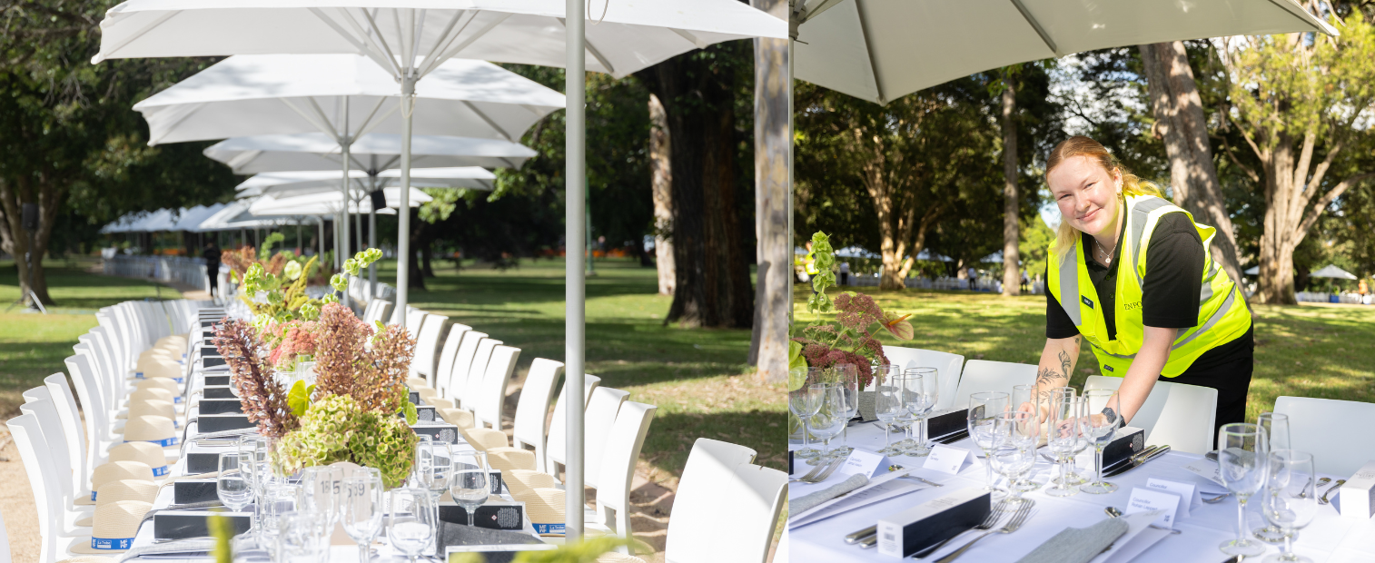 As 1,600 food enthusiasts settled into their seats for the World's Longest Lunch, a remarkable 4,800 plates were served at the record 600-metre table, set in the scenic backdrop of Kings Domain in true al fresco style. Our students supported the event's official catering partner Peter Rowland, and event specialists En Pointe, to present McConnell's lavish feast.
