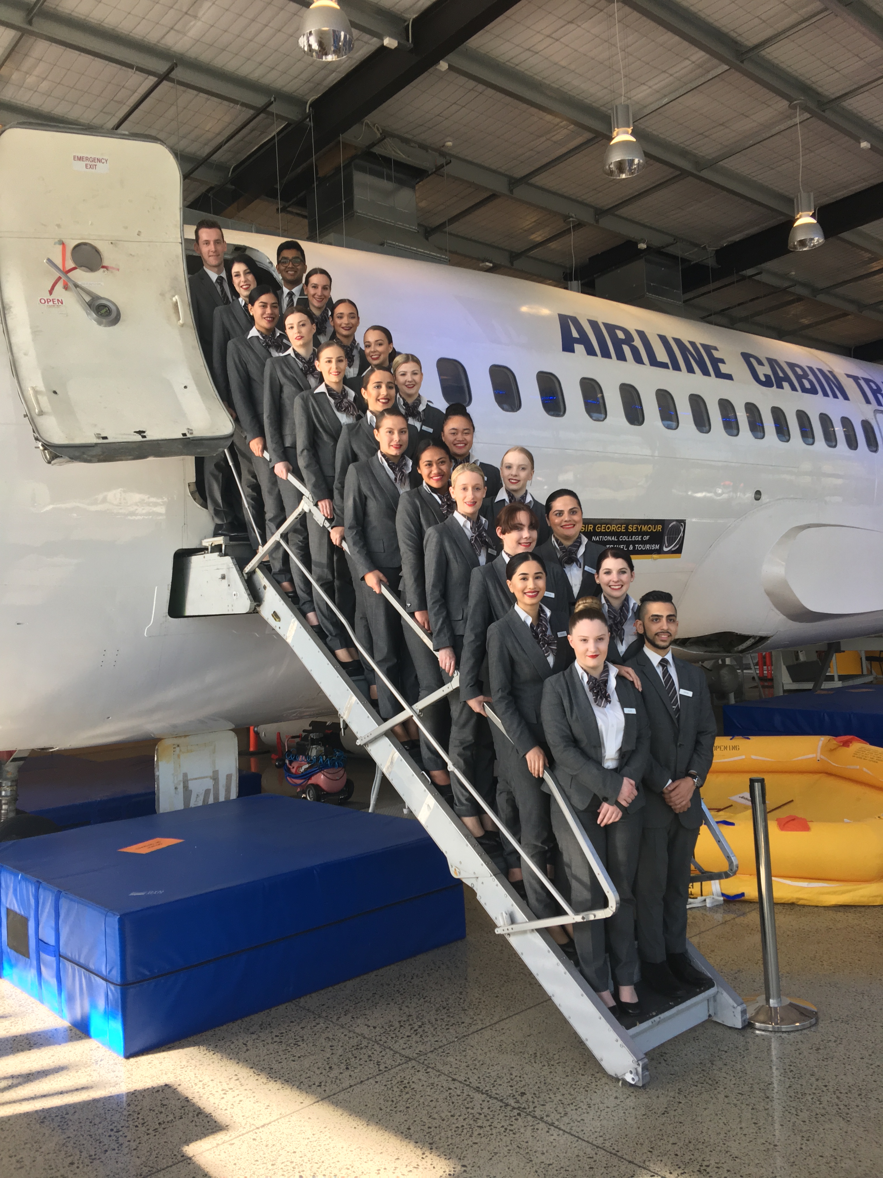 The group travelled to Auckland to complete their practical competencies for the 'emergency procedures – safety and security' component of the aviation course. The students were required to open an exit door and evacuate an aircraft, jump down a slide, and complete a number of scenarios which may occur on board during a flight, for example; putting out a fire, dealing with disruptive passengers, expecting the unexpected, boarding scenarios and life raft survival.