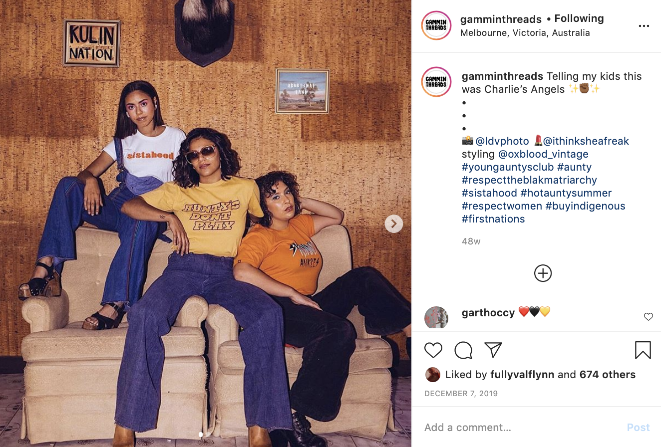 Gammin Threads is a fashion label founded by Tahnee, a proud descendant of the Yorta Yorta Taungurung, Boonwurrung & Mutti Mutti nations. The brand puts typography, nostalgic retro design tees first for people who believe in living colourfully, paying respect and women empowerment.