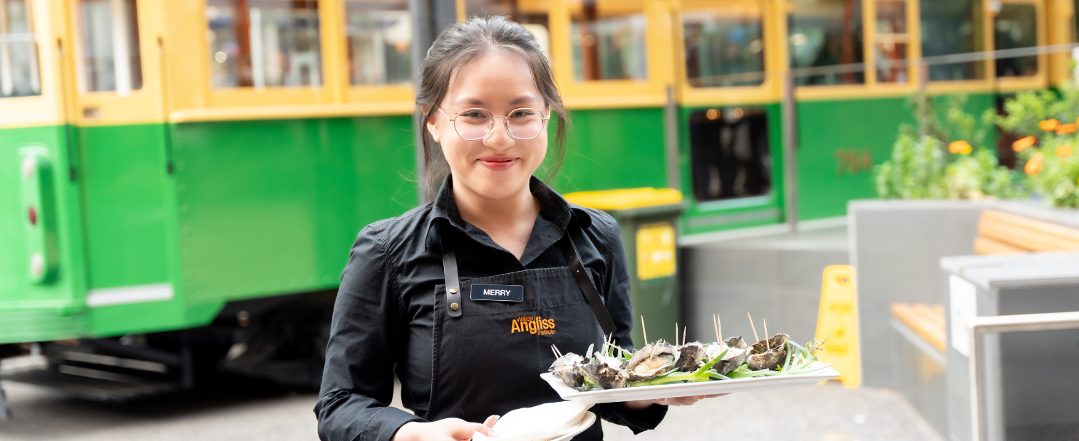 The Tram Café is the newest in a list of training facilities that simulate industry working environments, such as our Angliss Restaurant, the Bistro, and our hotel accommodation suites. The tram is the final stage of a package of $4.1 million worth of works through the TAFE Asset Maintenance Fund to support the hospitality training industry and joins our new Gelateria and Chocolateria training facilities.