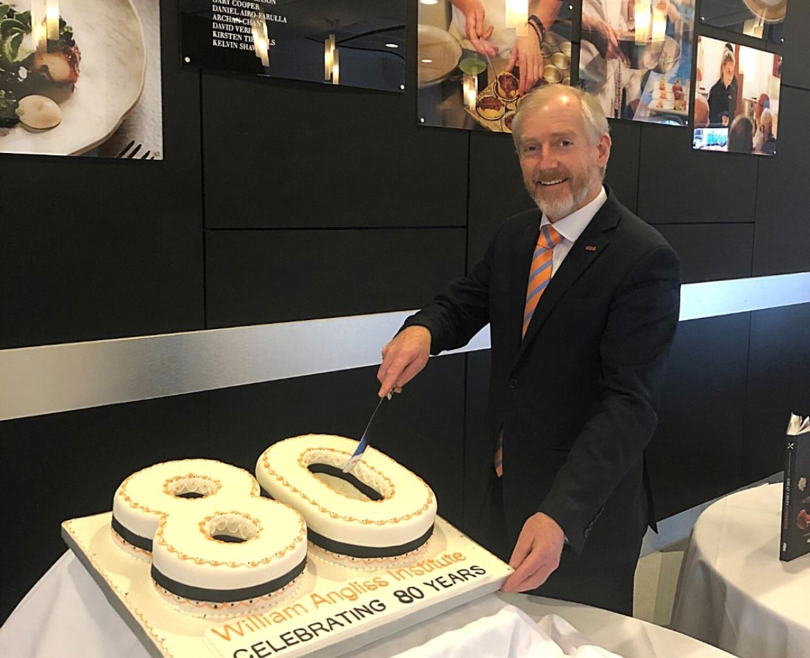 Staff and alumni were treated to a virtual celebration, hosted by William Angliss Institute Board Chair Dr Anne Astin AM PSM and CEO Mr Nicholas Hunt. In keeping with the traditions of the Institute, a special 80th birthday cake was created for the occasion by William Angliss Institute's professional bakery and patisserie teacher, Greg Williams.