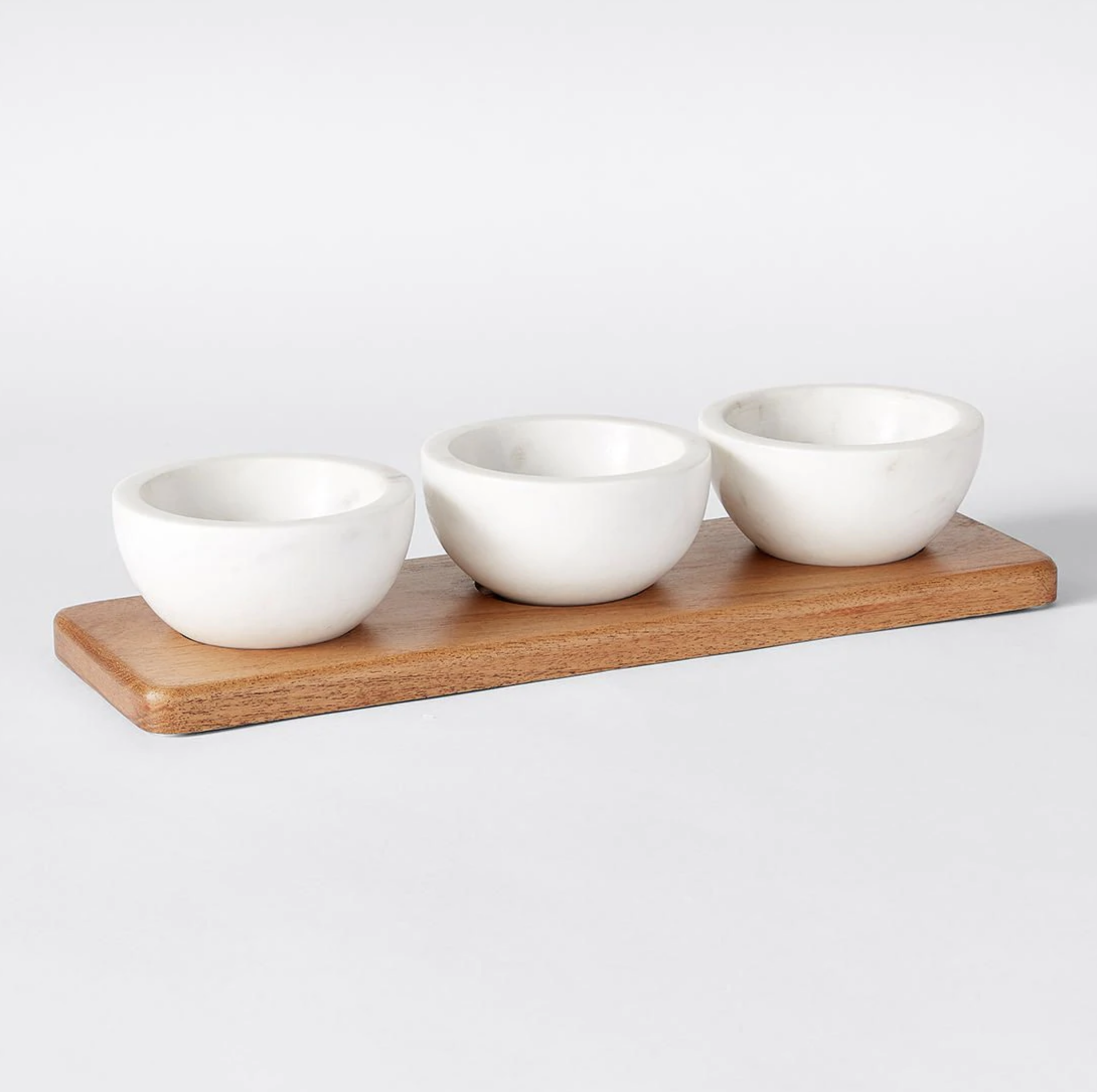 Again, we're still in the theme of small effort and big rewards. Decanting your hummus and dips into little bowls will elevate the look of your platter. You'll instantly go from I have nothing to eat, I'll have some veggies and hummus straight from the container to is that an artisinal dip you bought from the farmer's market? I can't tell cause this looks and tastes fantastic! We'll leave it here for you to decide.